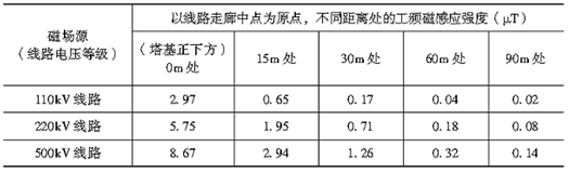 表1各種電壓等級輸電線路周圍典型的