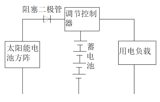 下圖為一獨(dú)立光伏發(fā)電系統(tǒng)的結(jié)構(gòu)示意圖。光伏發(fā)電系統(tǒng)由太陽能電池、阻塞二極管、調(diào)節(jié)控制器和蓄電池組成。