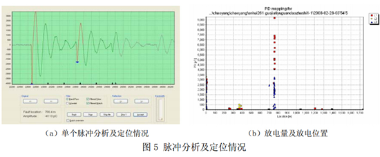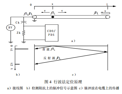 其中L為電纜長度,V為脈沖波在電纜中的速度,τ為兩個脈沖的時延。OWTS振蕩波電纜局部放電檢測和定位裝置采用該原理對電力電纜局部放電進(jìn)行定位,如圖5所示。
