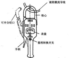 鉗形交流電流表實(shí)質(zhì)上是由一只電流互感器和一只整流系儀表所組成,被測量的載流導(dǎo)線相當(dāng)于電流互感器的原繞組,在鐵芯上的是電流互感器的副邊繞組,副邊繞組與整流系儀表接通。根據(jù)電流互感器原、副邊繞組間一定的變化比例關(guān)系,整流系儀表的便可以顯示出被測量線路的電流值。